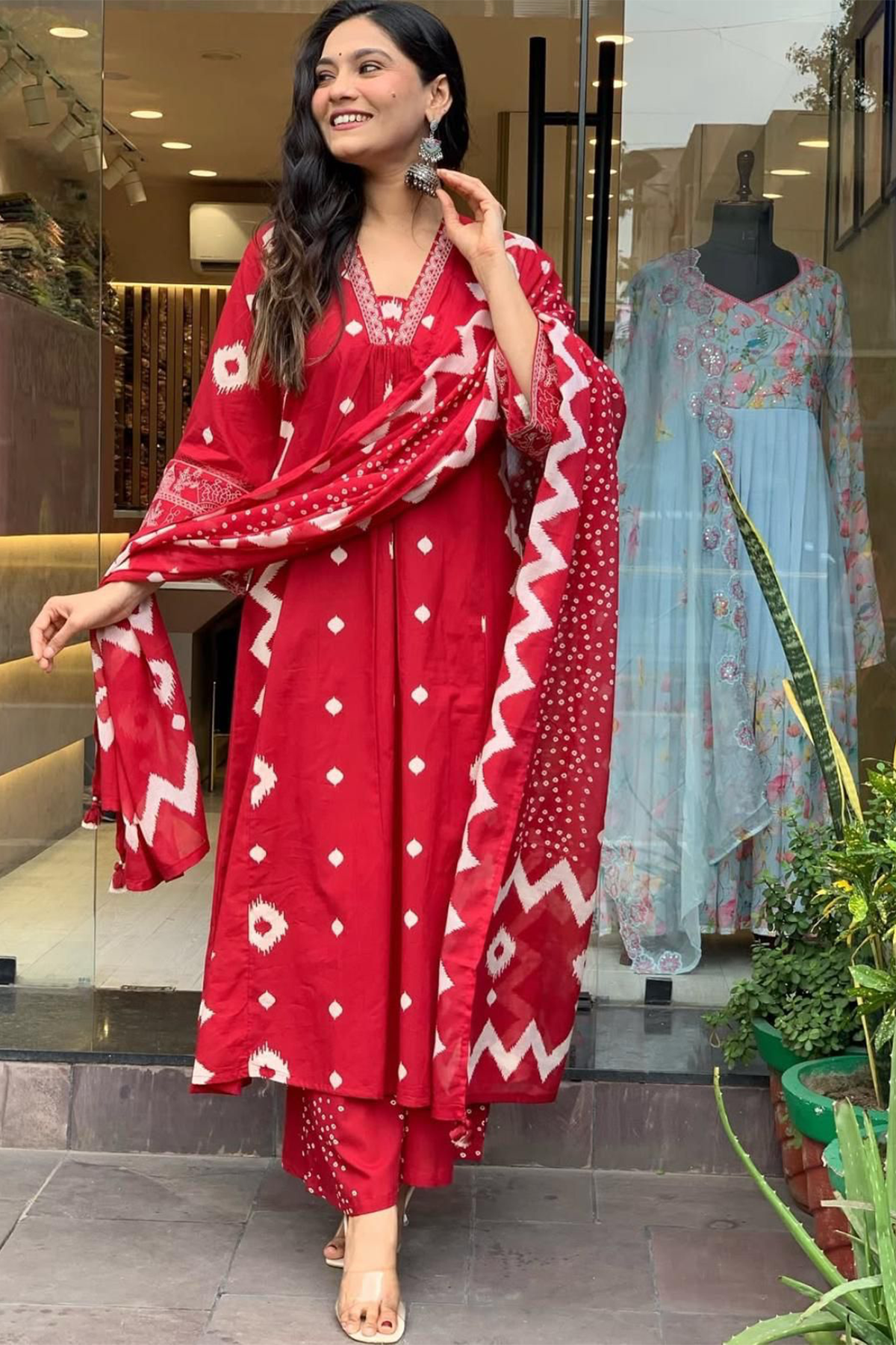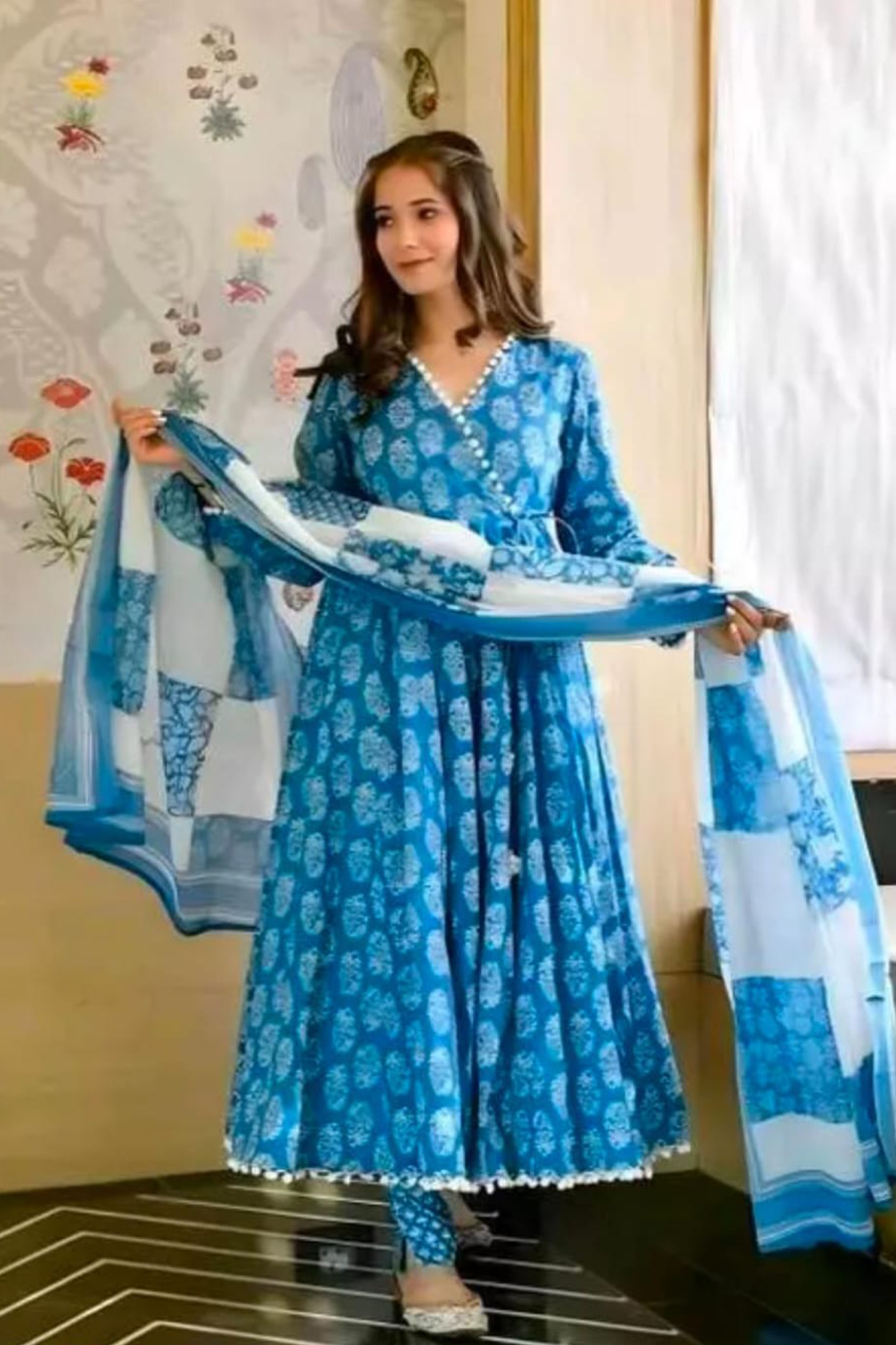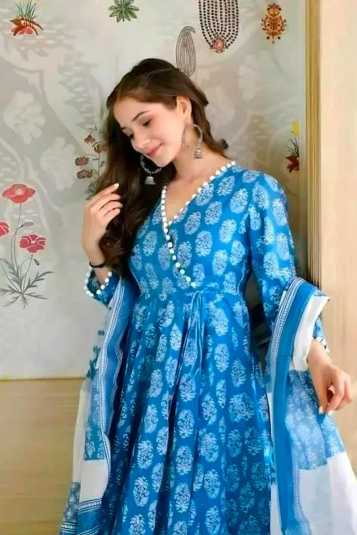 ₹4,245.00Anarkali Suit With Pant Dupatta Cotton Malmal Wholesale Kurti Set