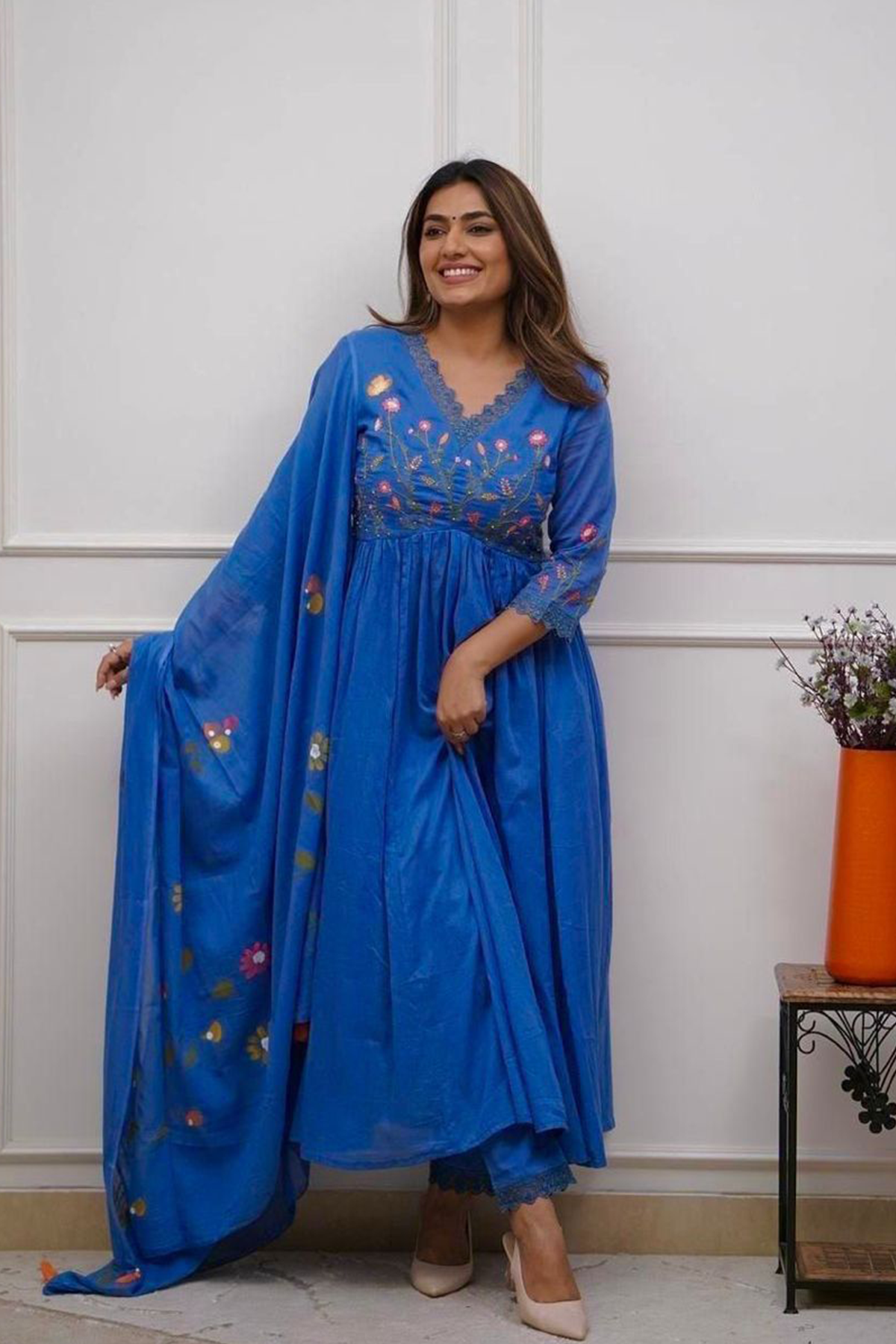 ₹1,750.00Anarkali Suit Embroidery Work Collection Cotton Malmal Printed Dupatta