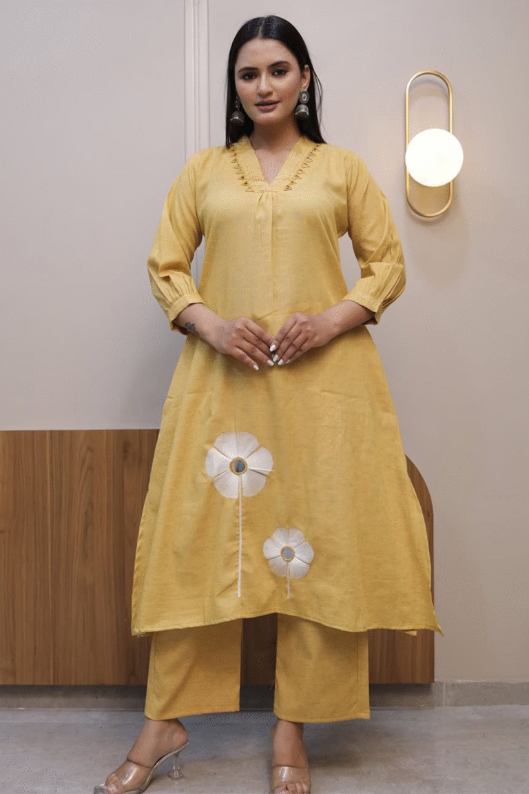 Cotton Cord-Set With Floral Pach Work
