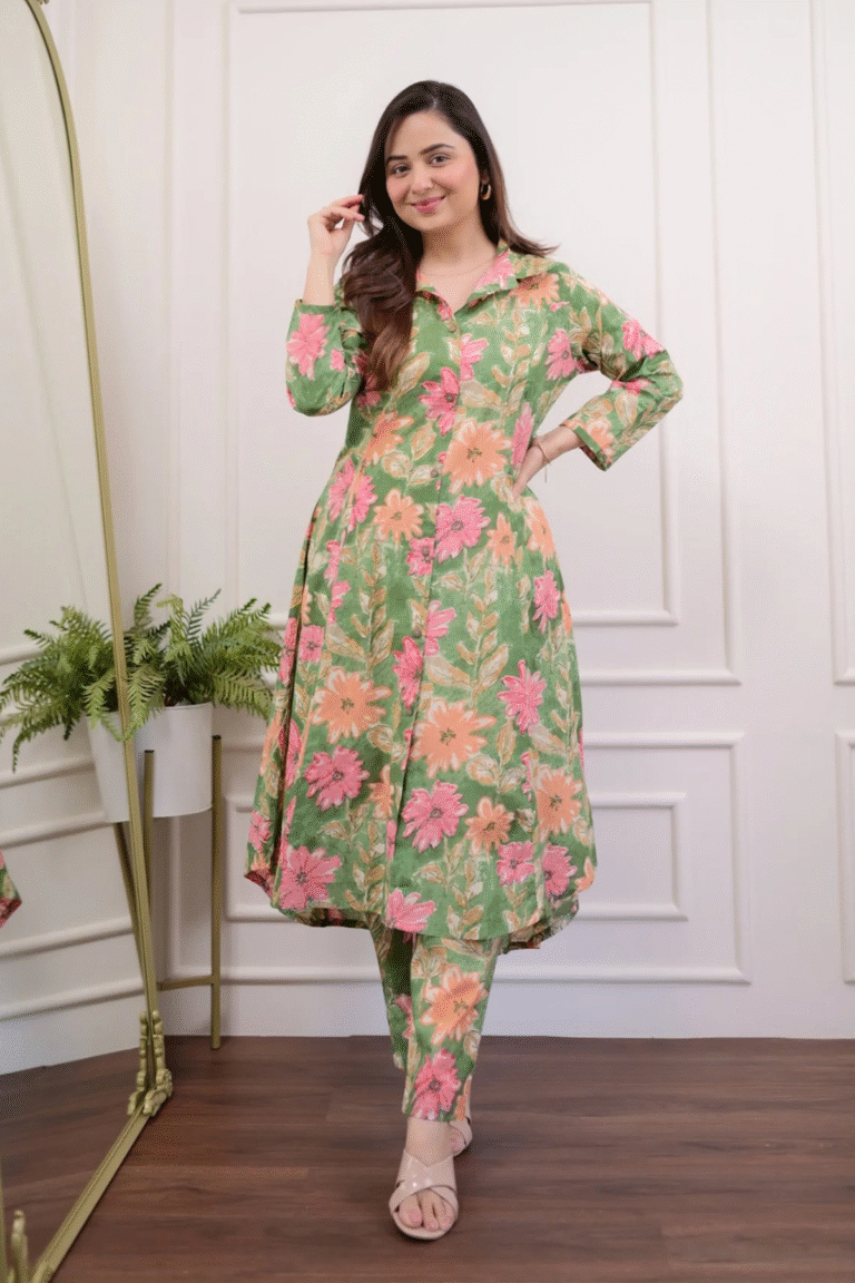 Cotton Printed Collared Kurta Pant Set