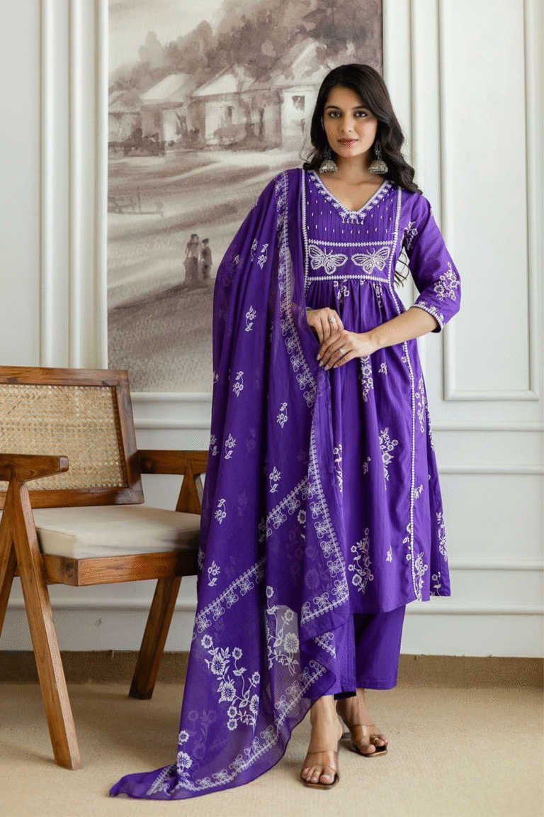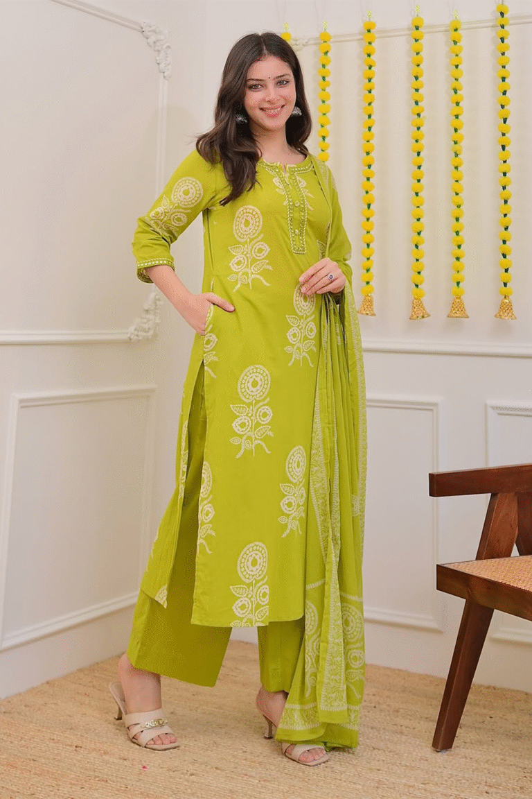 Pure Cotton Print Kurti With Pant & Mulmul Printed Dupatta