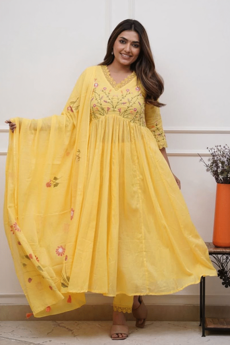 Anarkali Suit Embroidery Work Collection Cotton Malmal Printed Dupatta