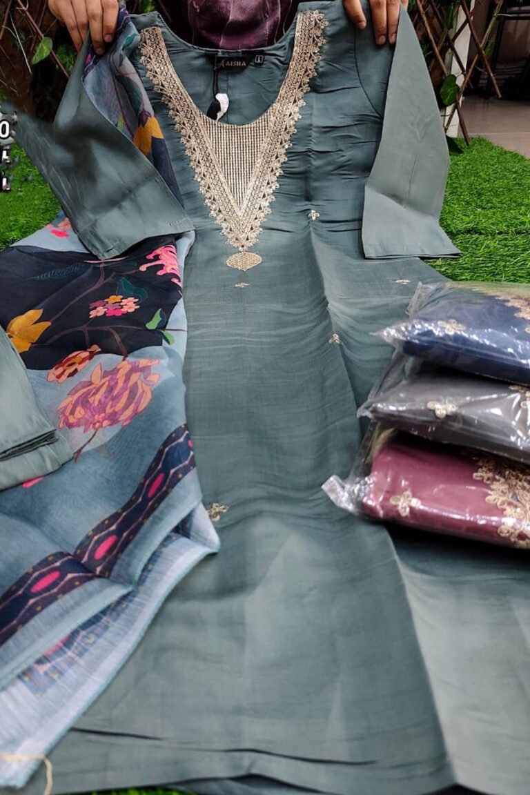 Roman Silk 3 Piece Kurti Pent Set Collection