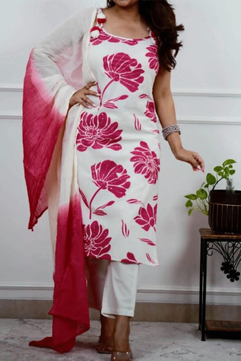 Pure Cotton Suit With Fine Thread Embroidery Work