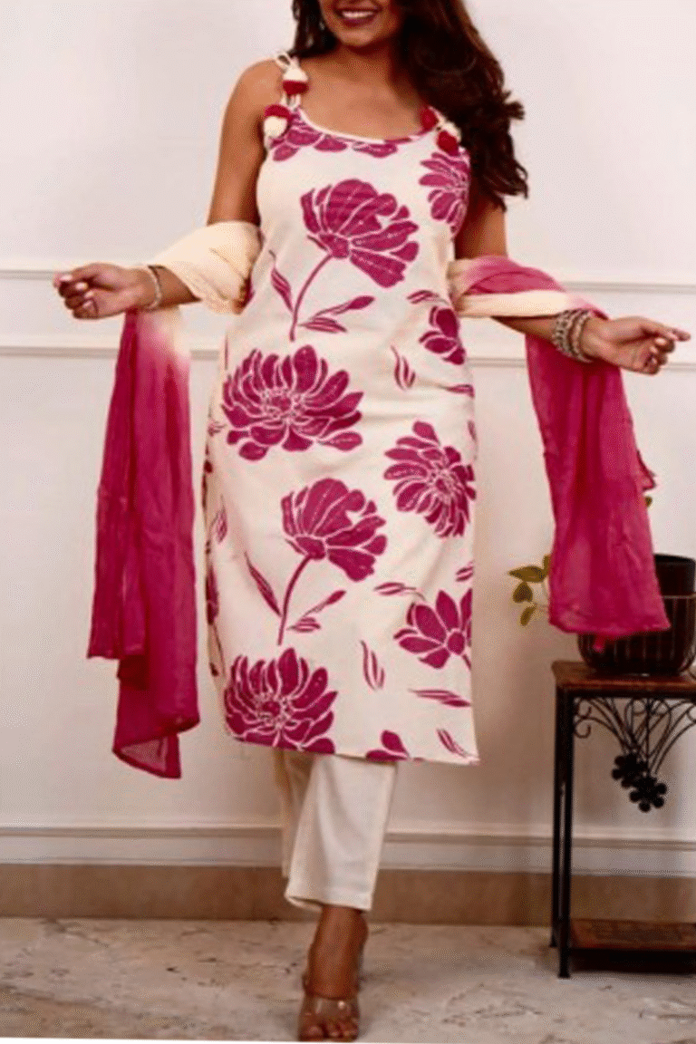 Pure Vatican Silk Fabric Straight Kurti With Pant Dupatta Set
