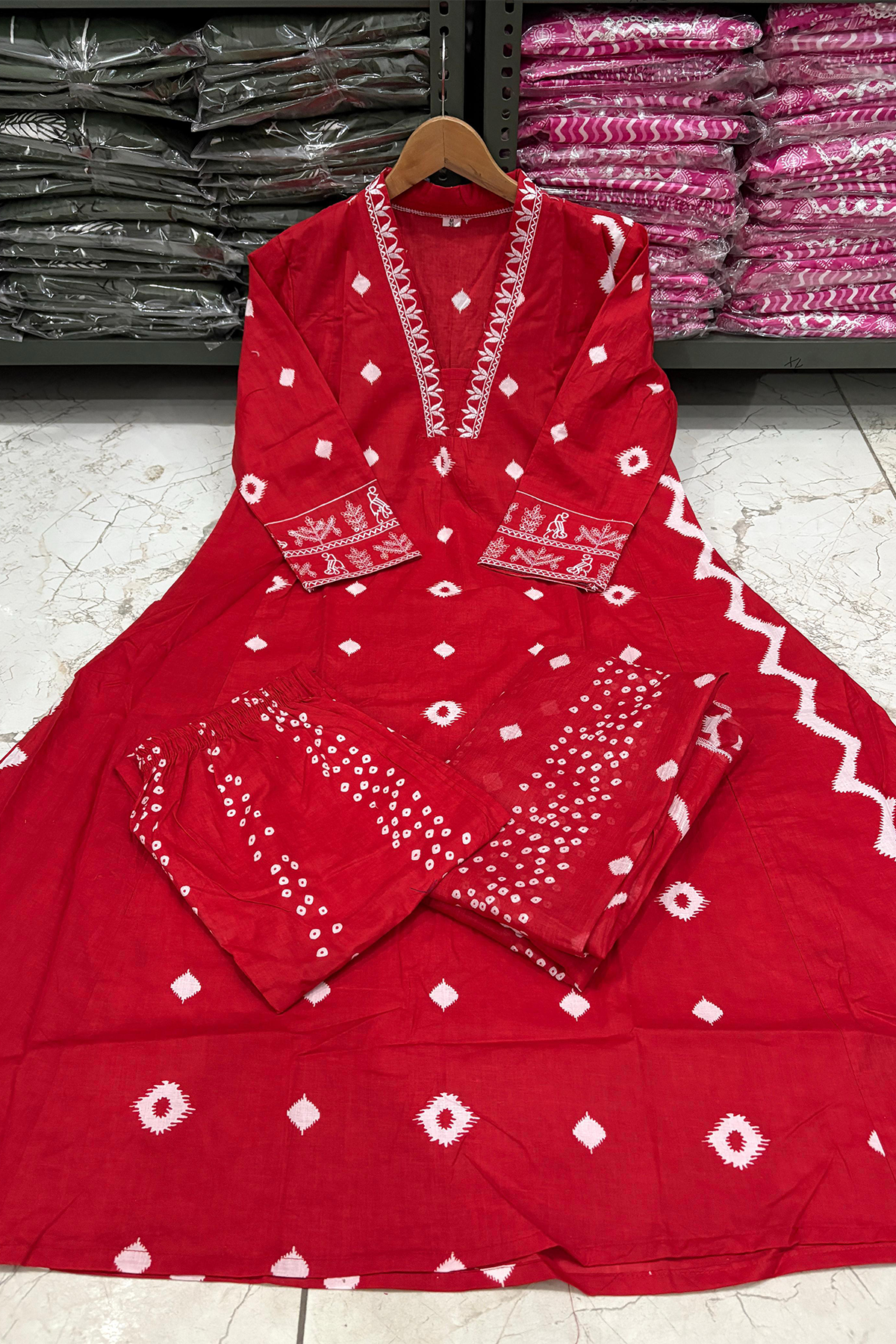 Embroidery Cotton 60*60 Printed Work Wholesale Kurti Set