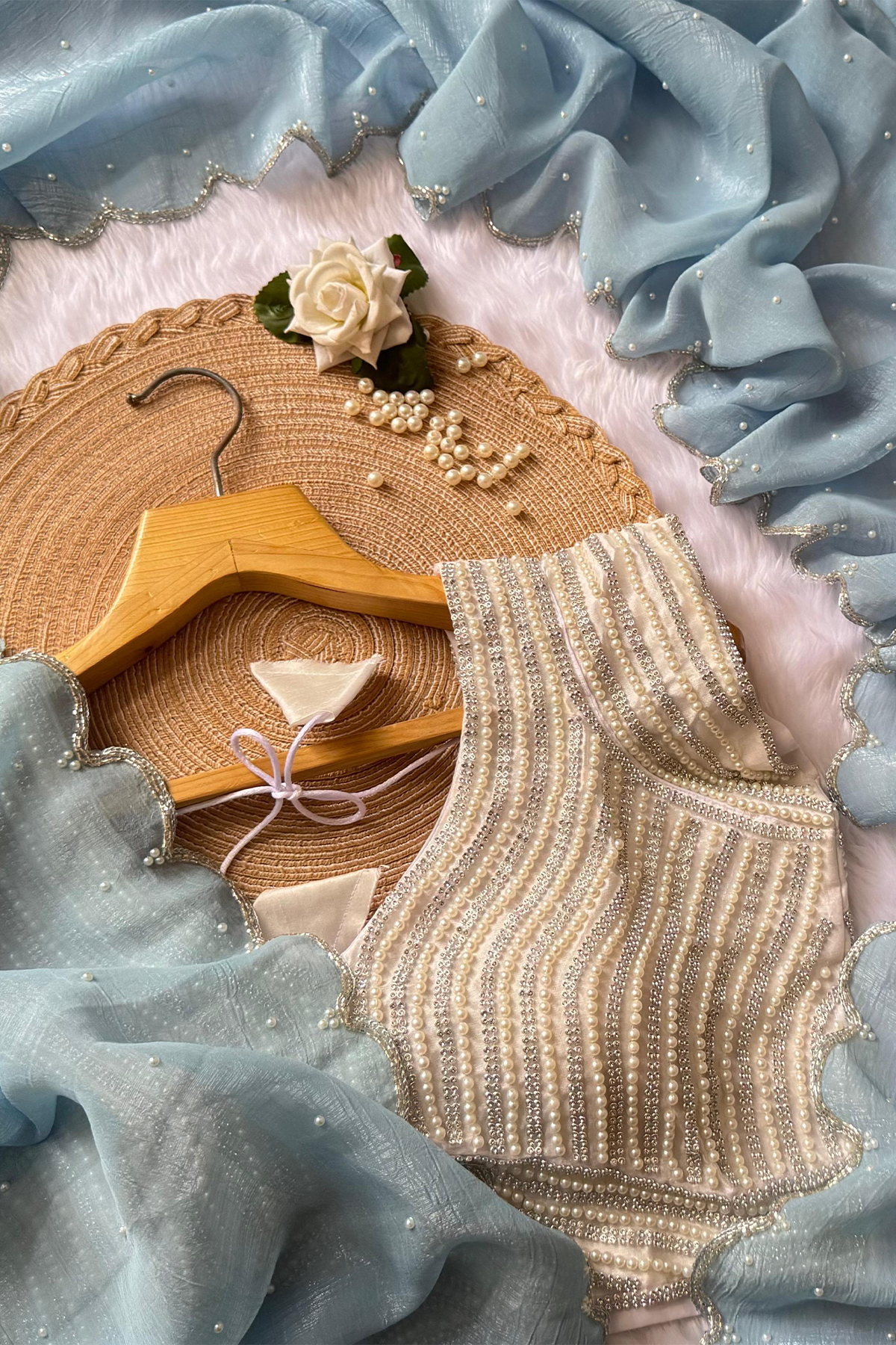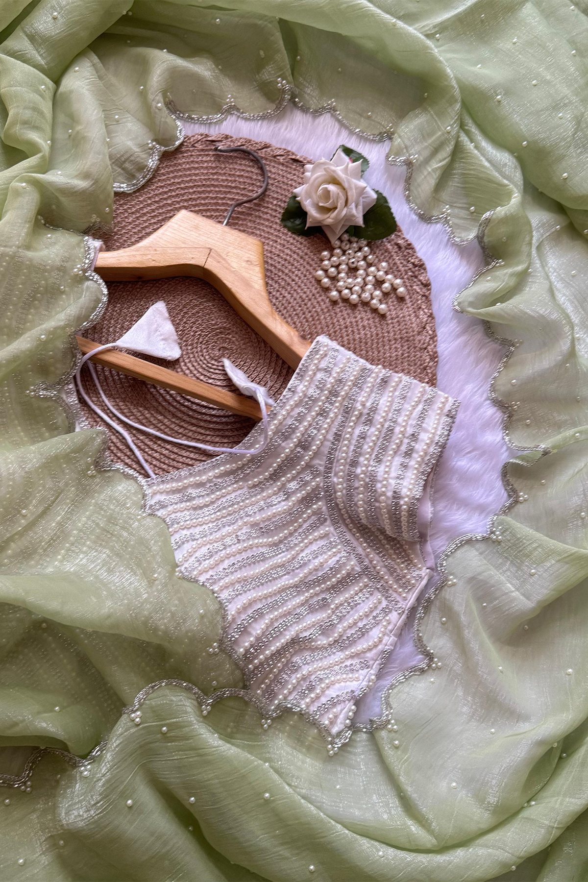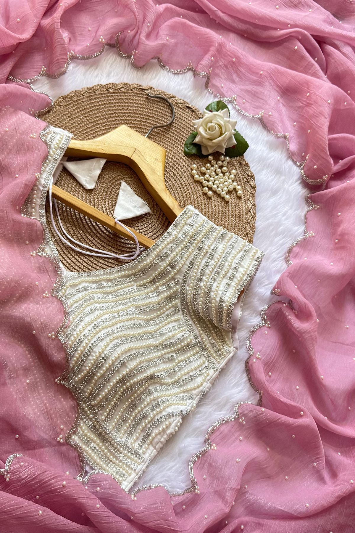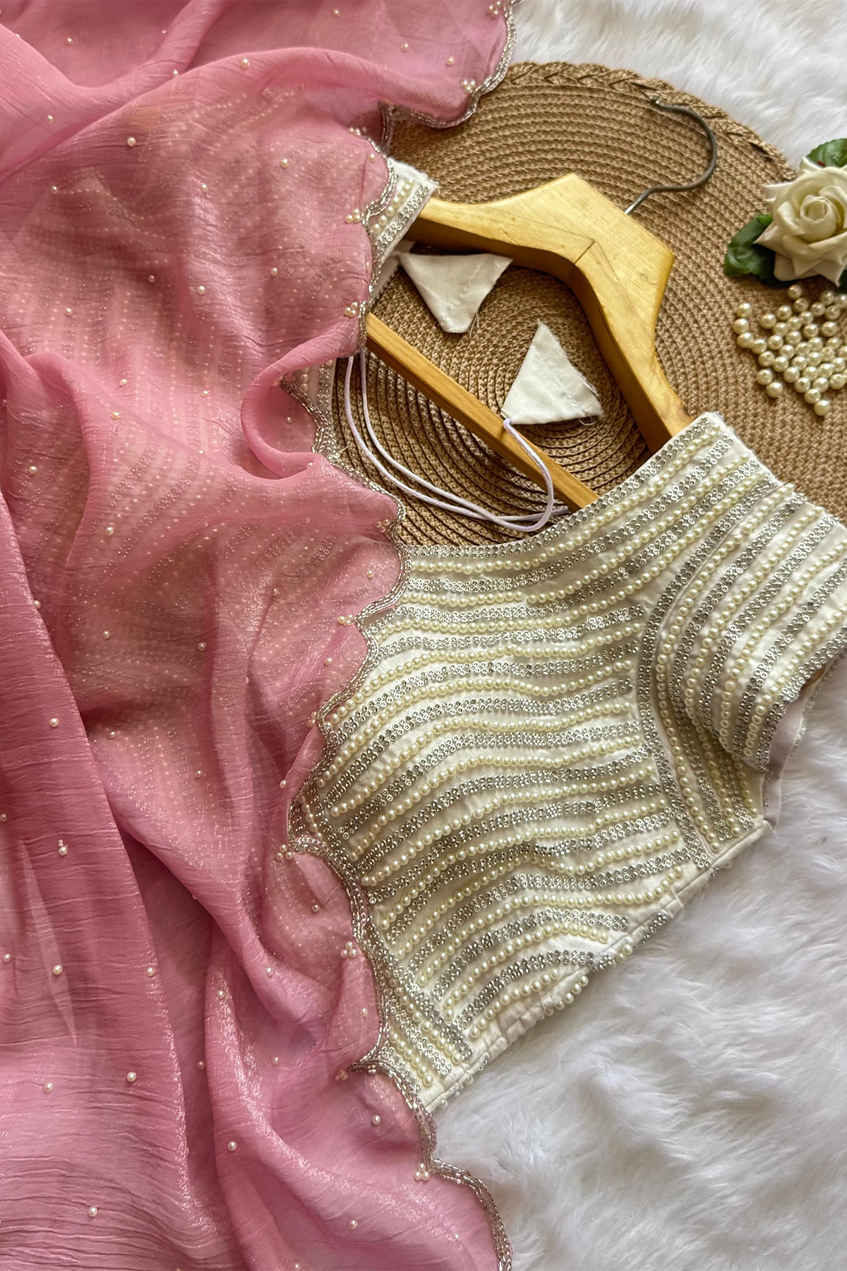 Beautiful Handwork Crush Silk Saree & Stitched Blouse
