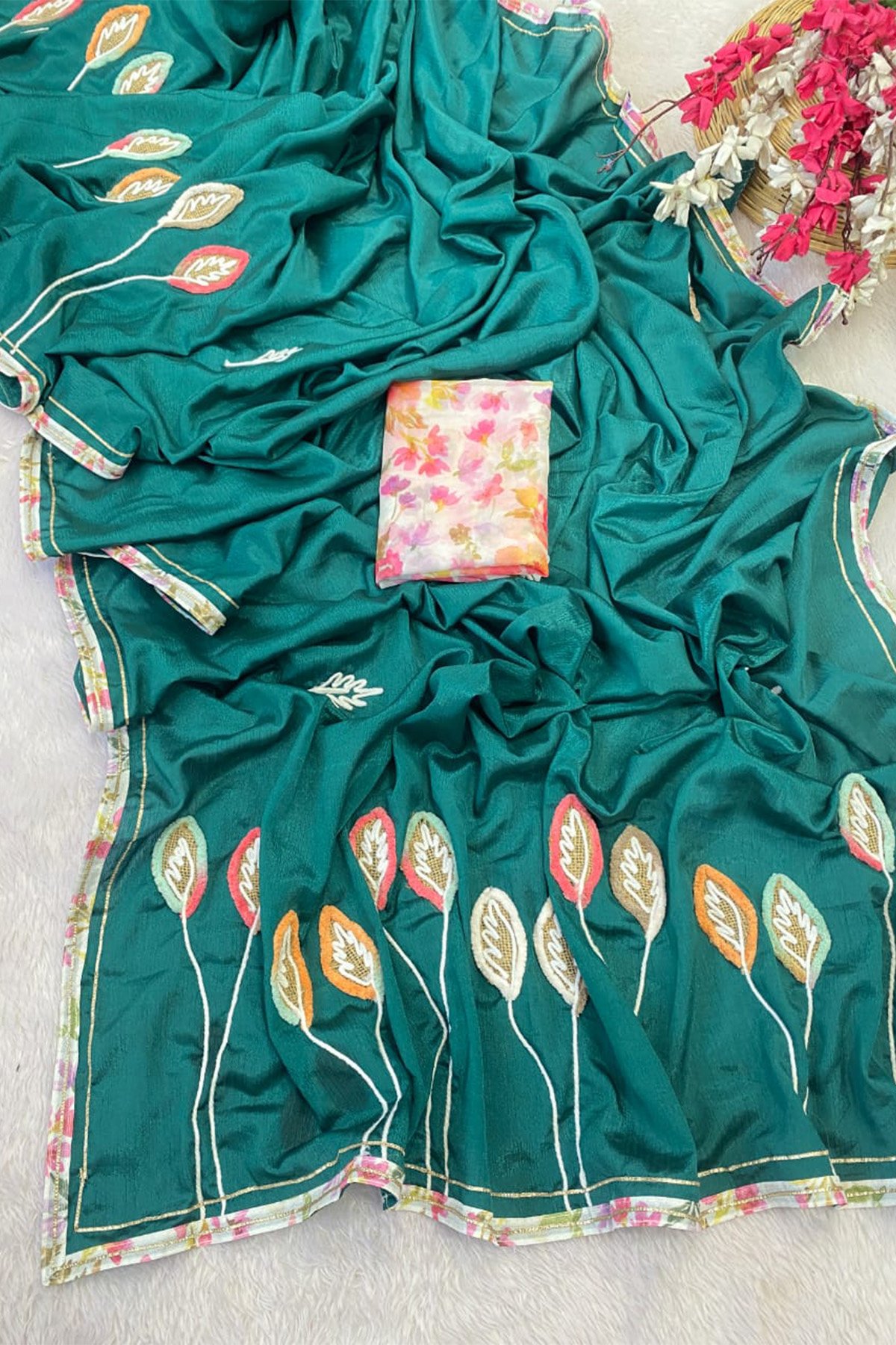 Party Wear Moti Handwork Jacquard Border Saree Collection