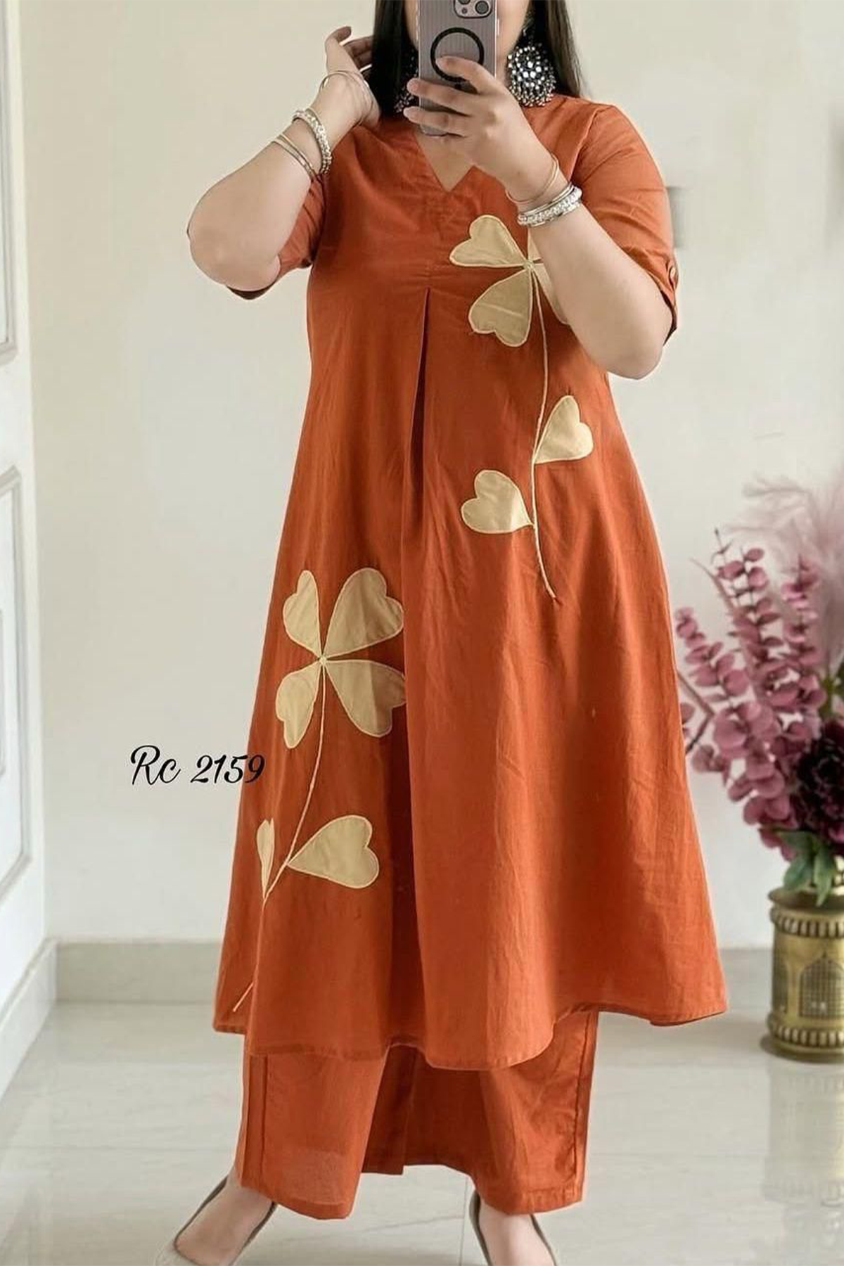 Cotton Cord-Set With Floral Pach Work