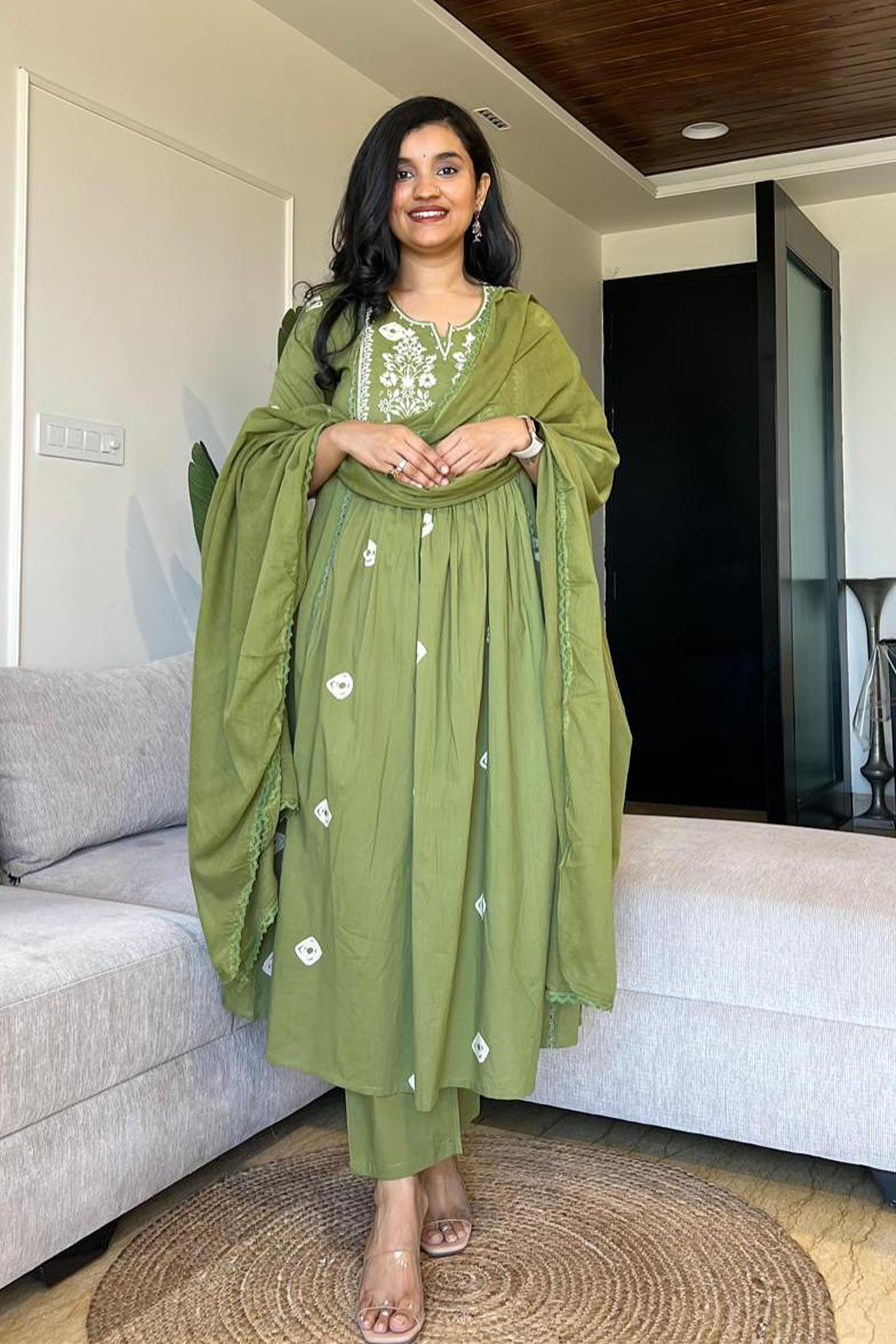 Fabric – Cotton | Work – Threadwork Embroidery | Bottom – Solid Pant | Dupatta – Cotton Solid |