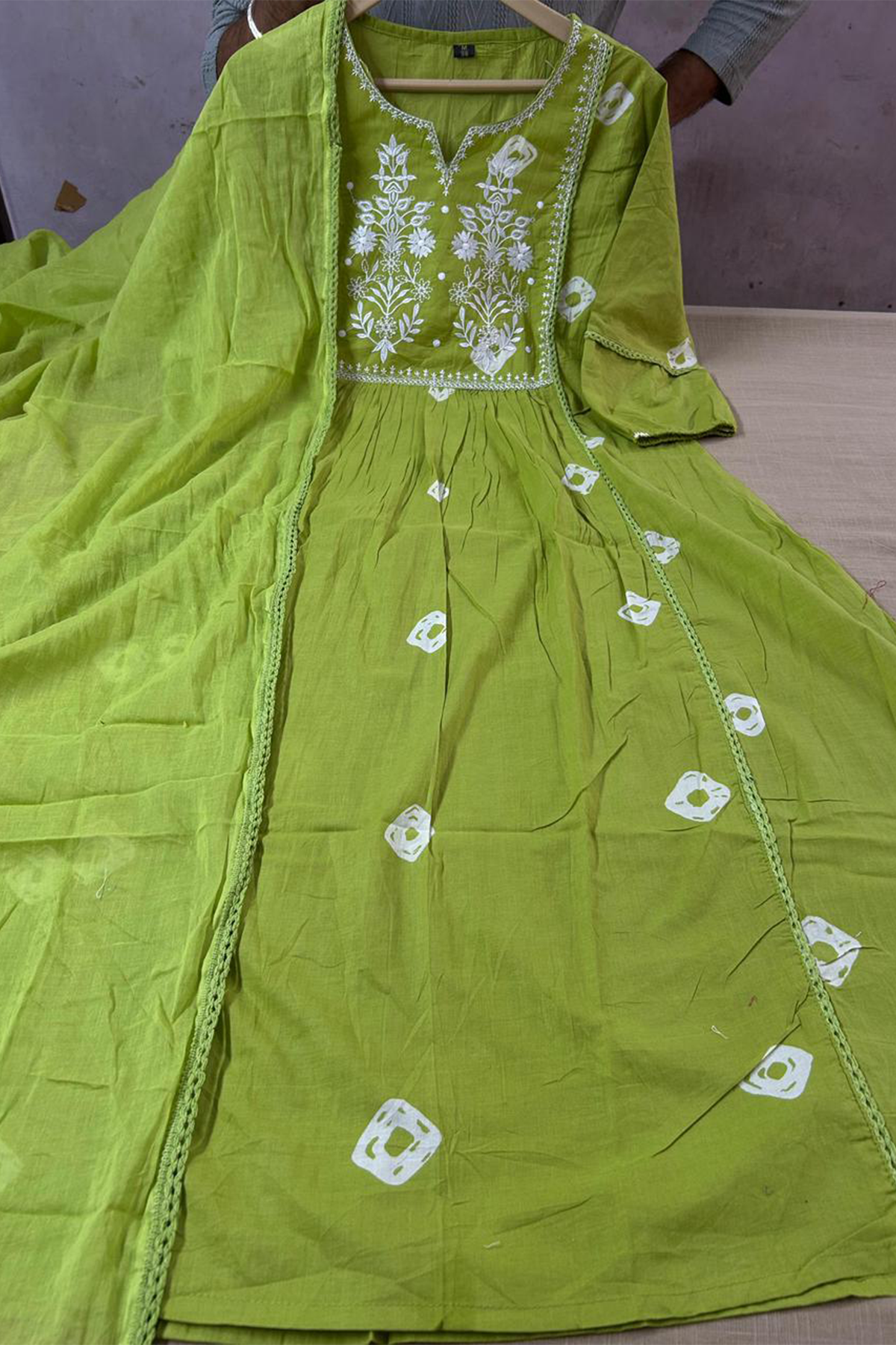 Anarkali Suit Embroidery Work Collection Cotton Malmal Printed Dupatta