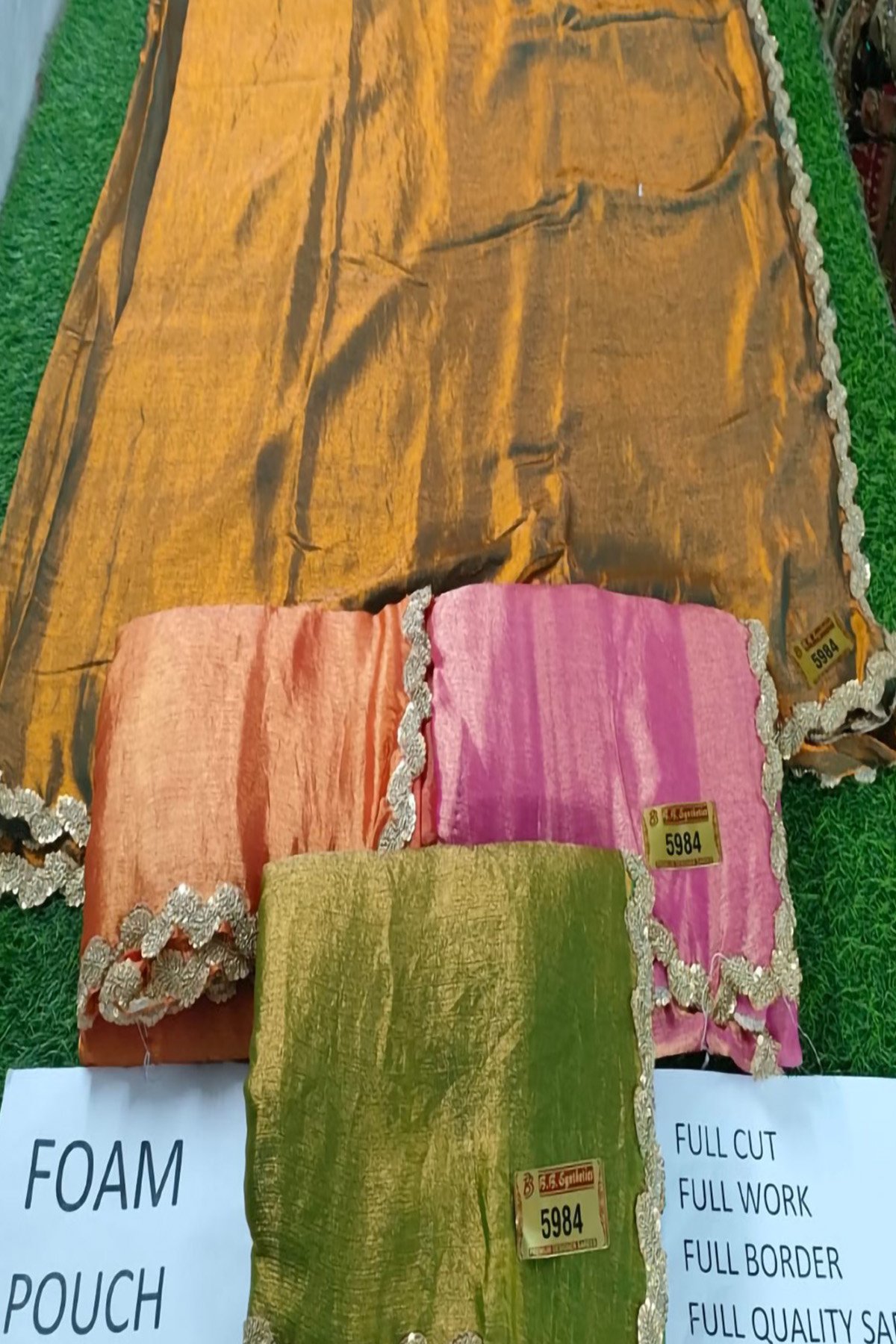 Saree – Chiffon Saree With Sequence Work & Cut Work Border | Blouse – Running |