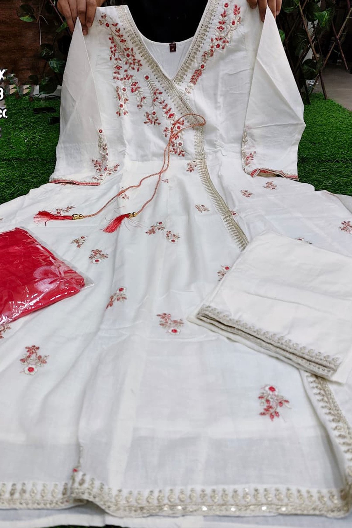 Fabric: Mal Cotton | Work: Embroidery Detailing | Set Includes: Gown + Pant + Dupatta (3 Piece Set) | |