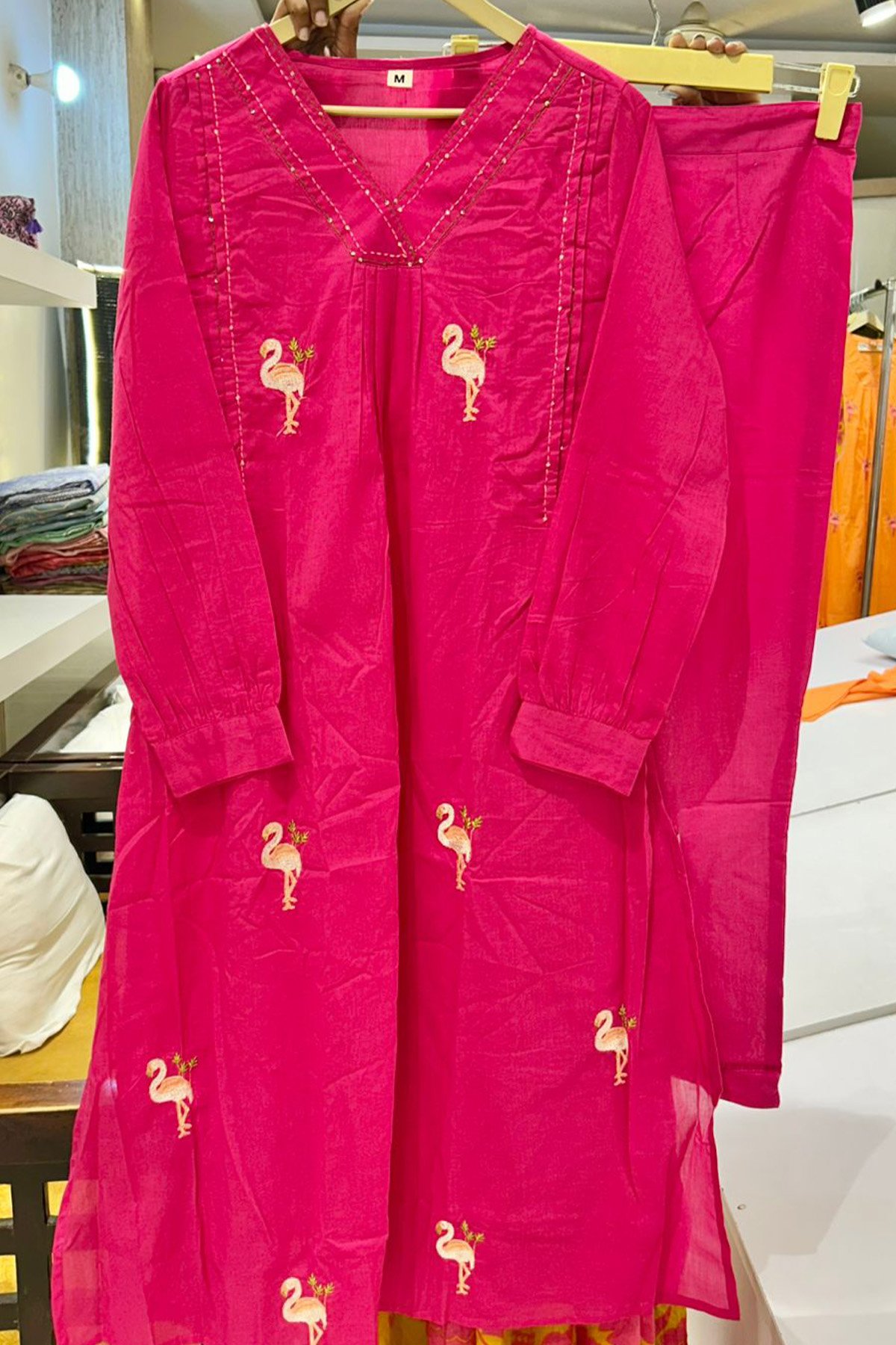 Pure Cotton Sequence & Jari Embroidery Kurti Pant Set