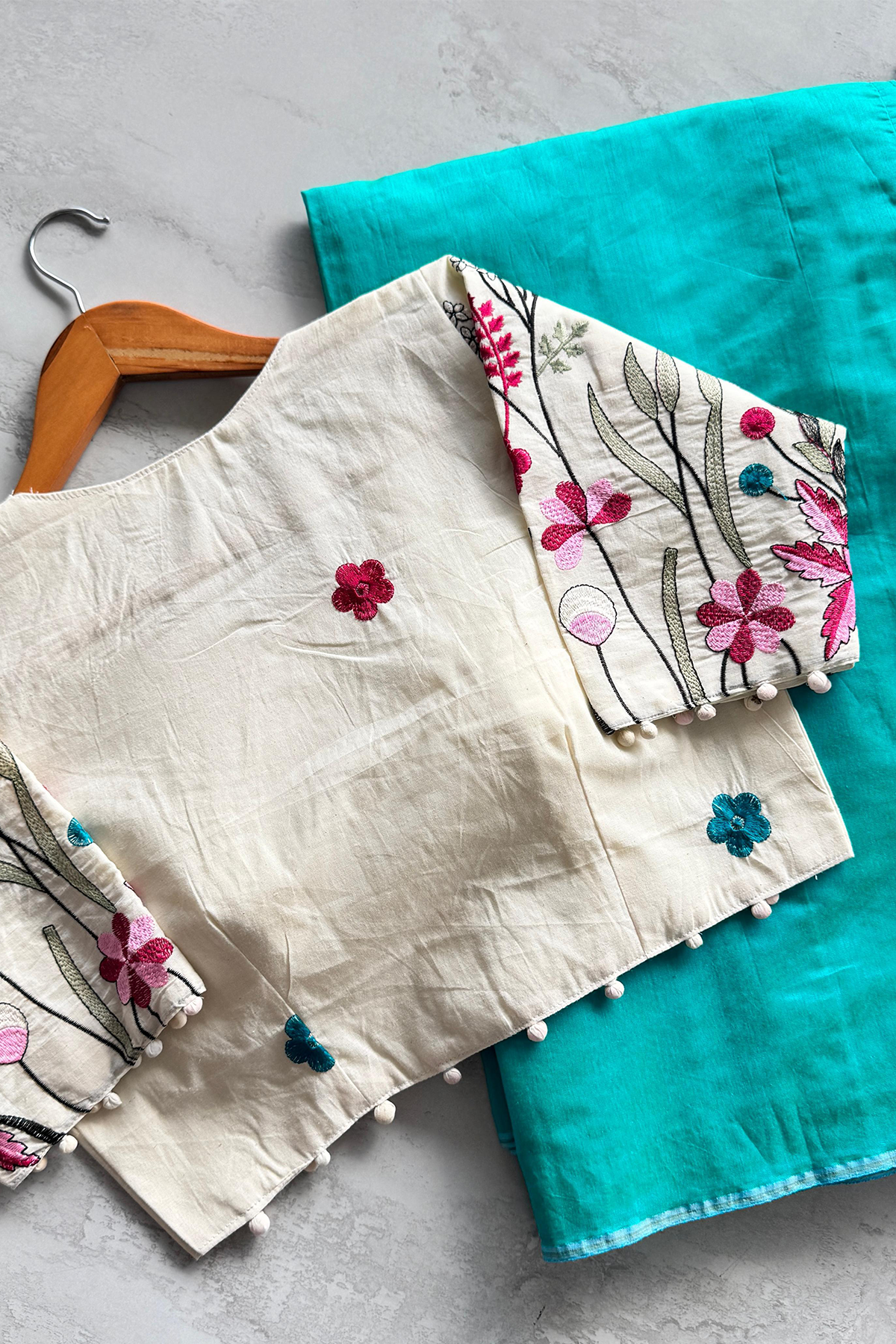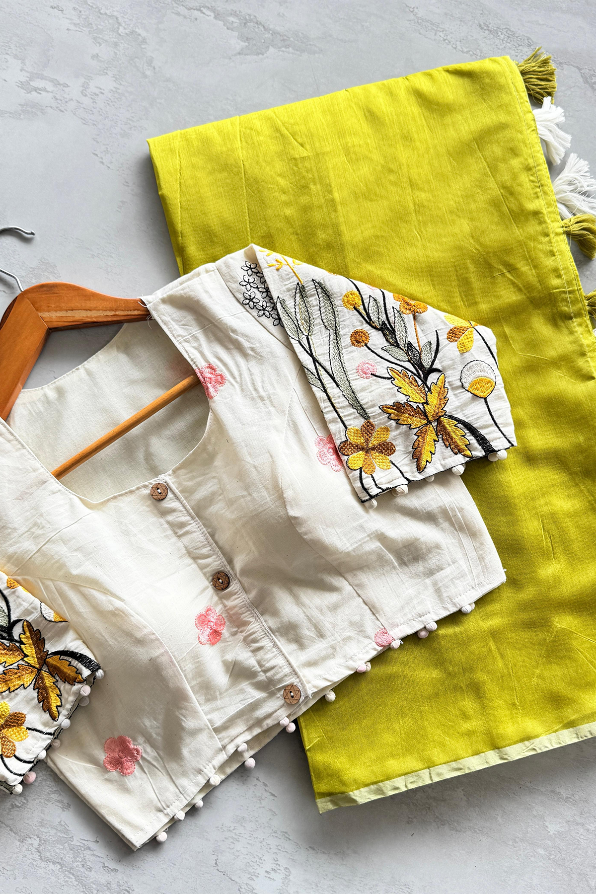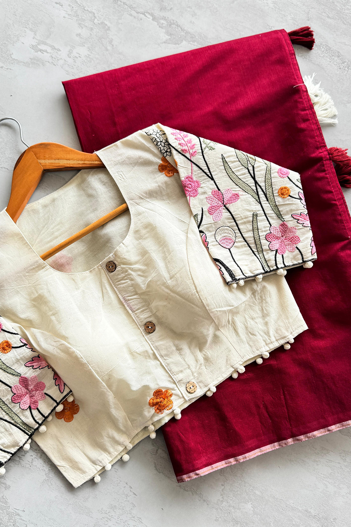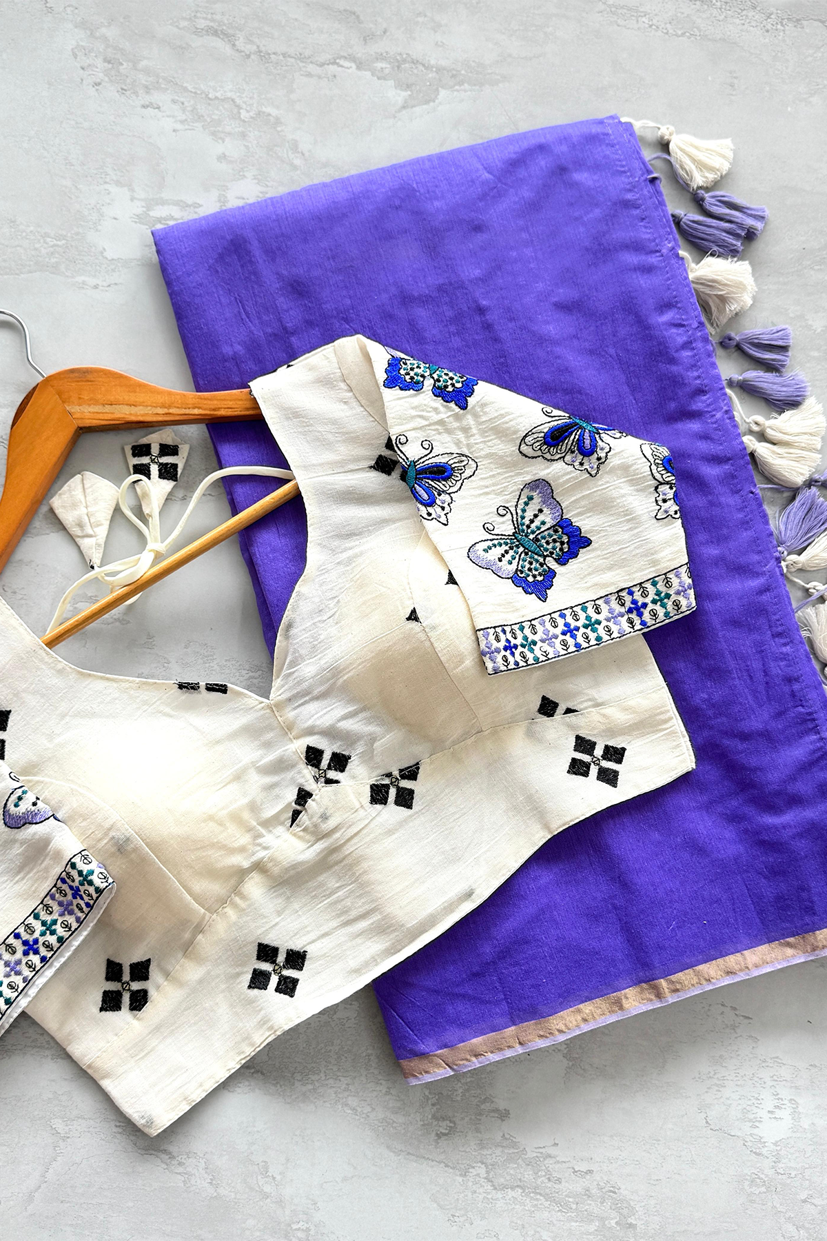 Mulmul Chanderi Saree With Stitched Khaadi Blouse