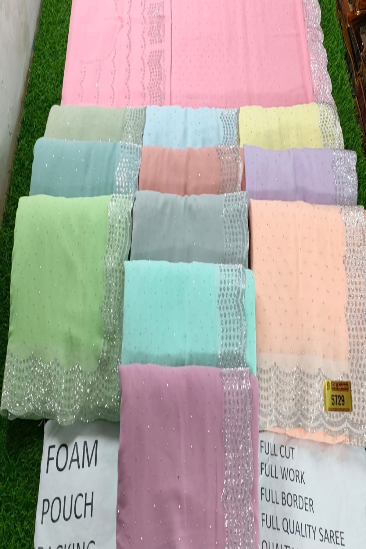 Saree – 60 Gram Blooming With Stone Work & Cut Work Border | Blouse – Stone Work