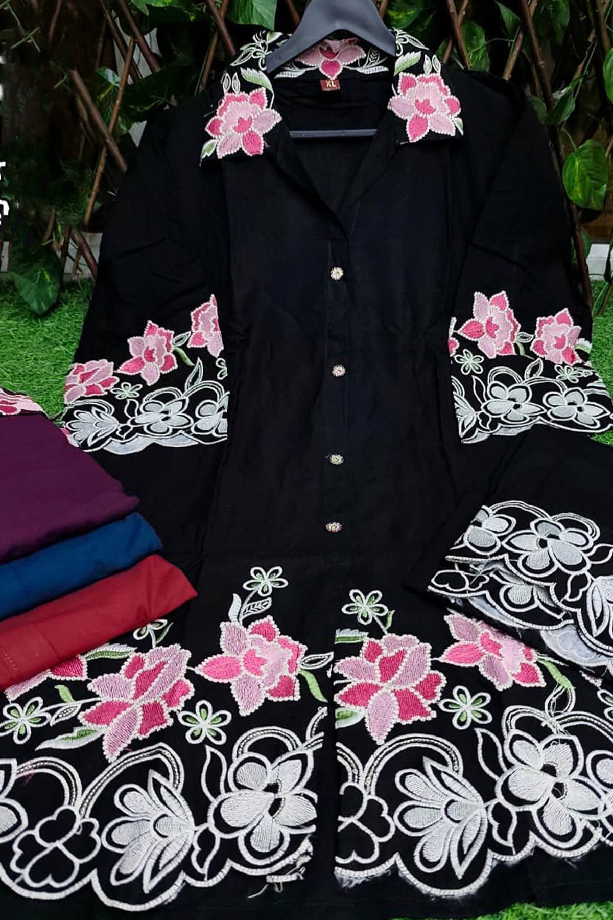 Premium Cotton Flex Full Embroidery Work Kurti Set