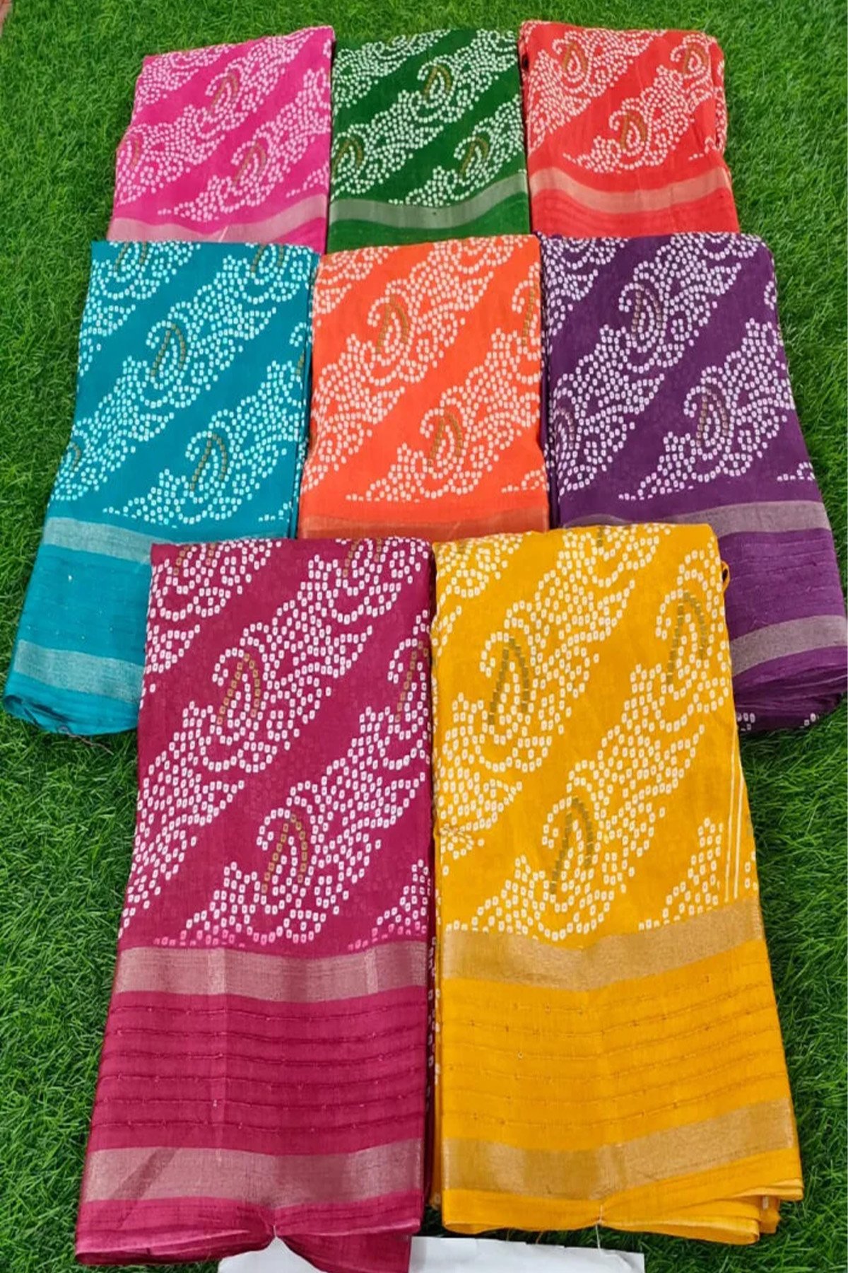 Soft Dola Sarees With Bandhani Print & Sequence Borders Wholsale Collection