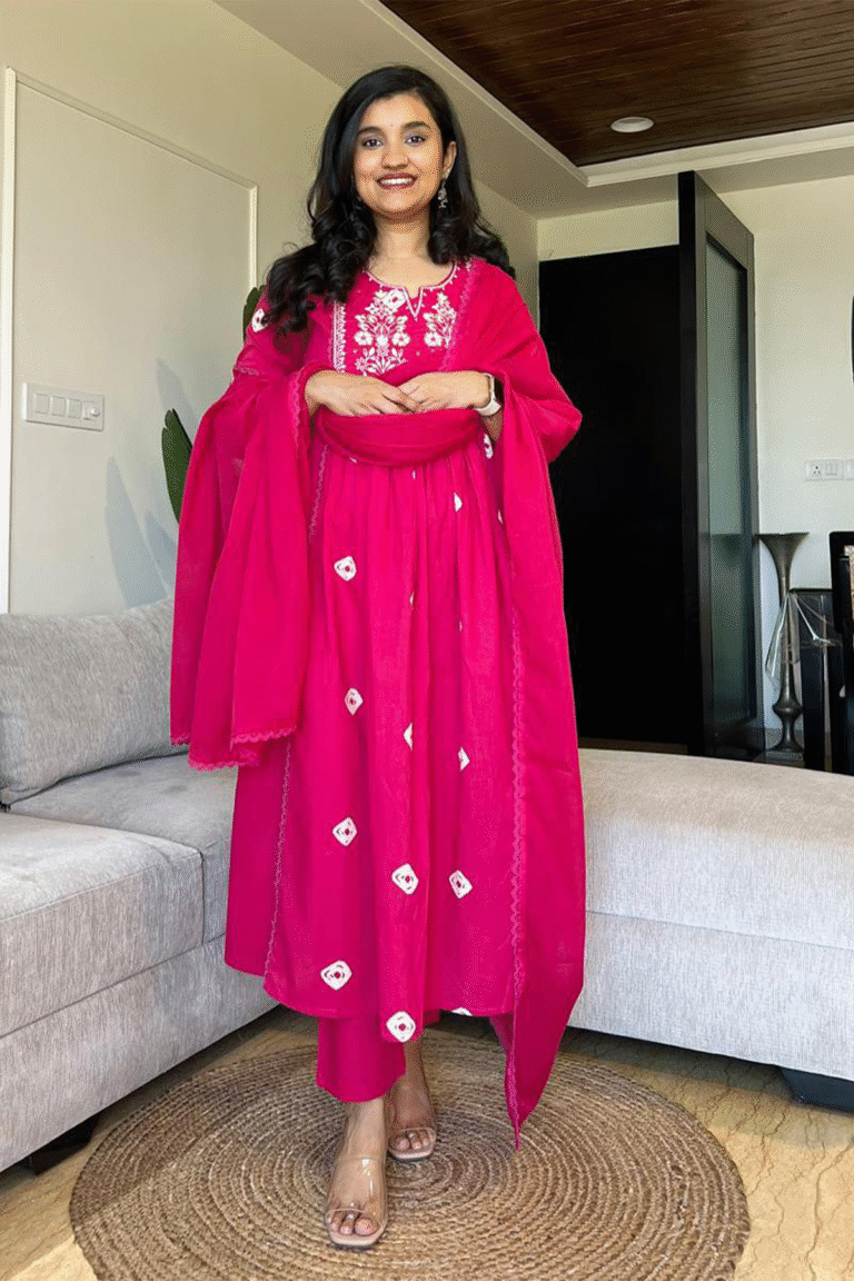Designer Jaipuri Cotton Sequence Printed Anarkali Kurti Set