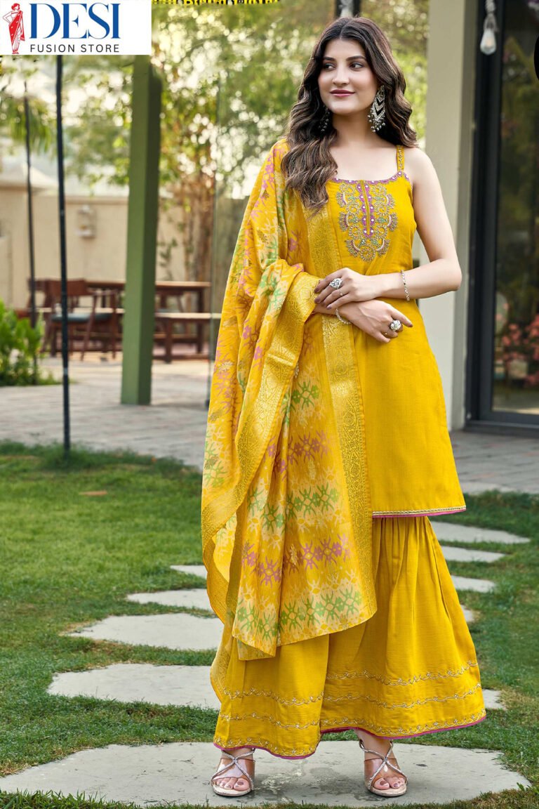 Viscose Vetican Embroidery Kurta With Sharara Set