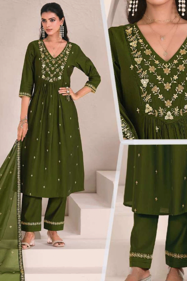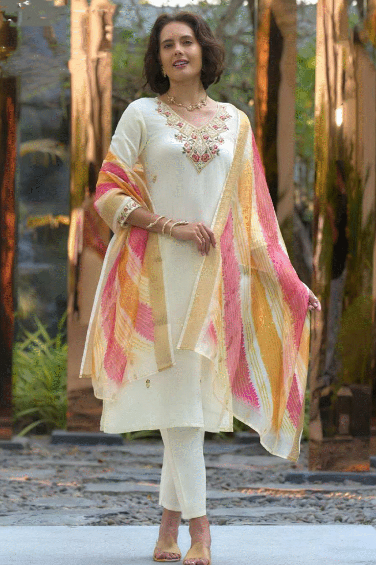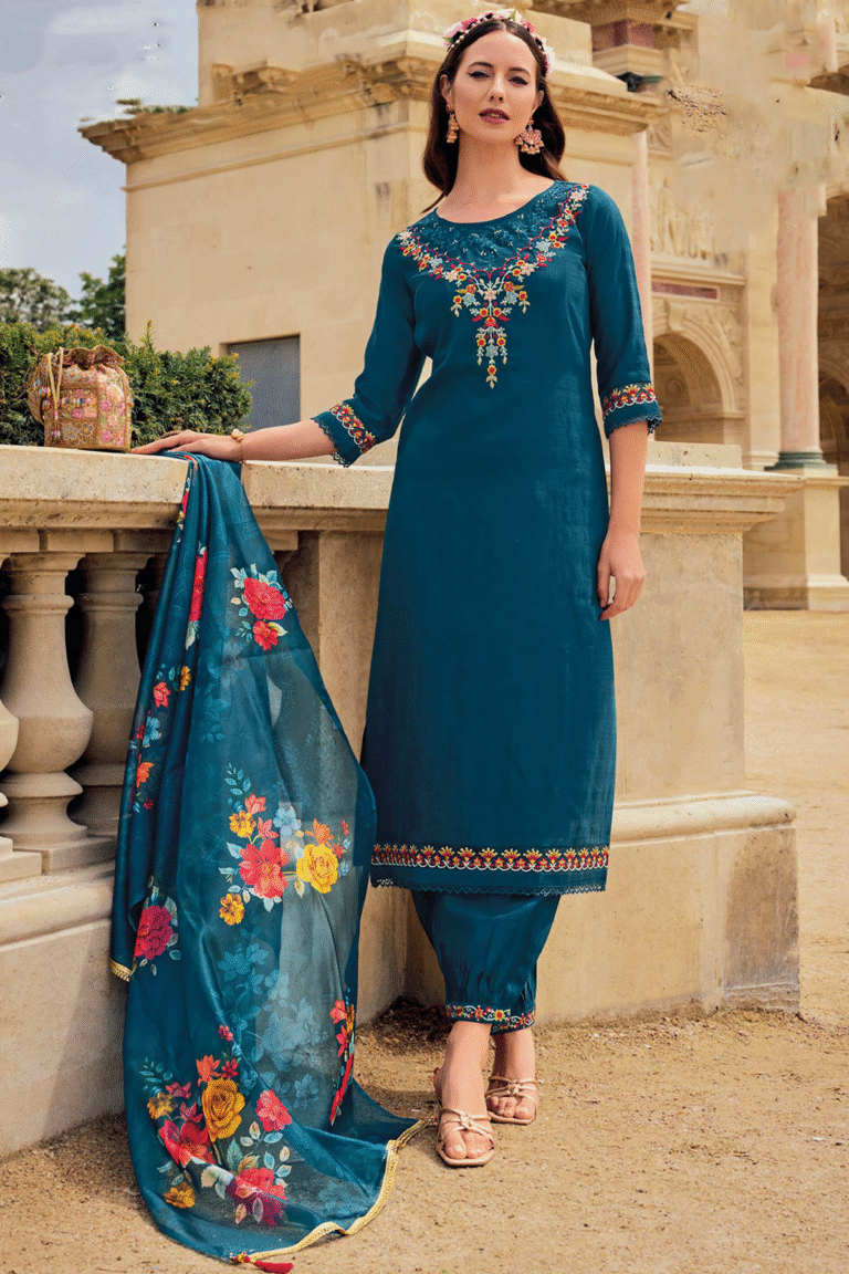 Viscose Silk Calf Length Straight Kurta Pant With Dupatta Set
